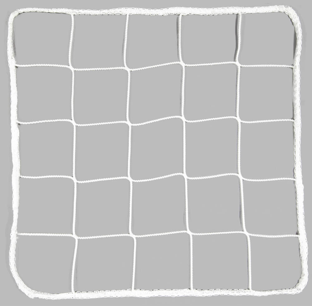 Rete per porte da calcio ridotte in cordetta di polietilene 100% stabilizzato UV Ø 3 mm. Lavorata con nodo. La confezione contiene 2 reti da calcio.